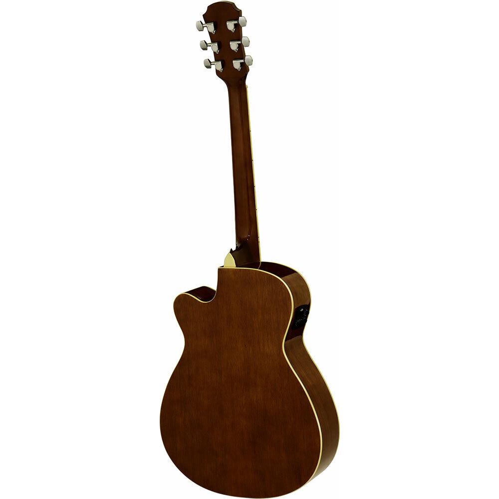 AFN-15CE is a cutaway electric version of AFN-15. Aria MG-30 preamp offers 3 bands EQ control and on-board tuner. Selected Spruce top with Meranti back & sides, an Ironwood bridge & fingerboard and a Nato neck this guitar offers you an authentic tone and feeling.