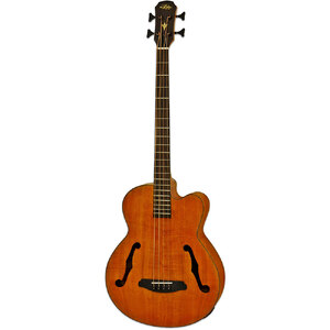 This is a hollow body fretless bass from the Aria Elecord series. Gorgeous flamed body with wood binding was applied to create a distinctive appearance. A stunning vintage vibe which can be used in both acoustic and amplified situations. The Aria designed AEQ-4B (4 band equalizer, Notch, Phase & Tuner) enables you to work with a wide range of tone control.