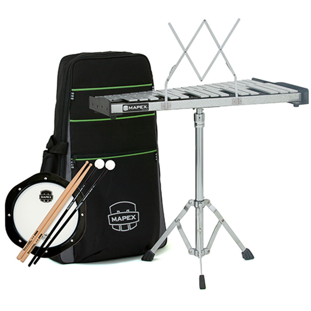 Backpack Percussion Kit, 2.5 octave 32-note keyboard (F5-C8) with Silver Sparkle front rail, 1" wide tone bars, removable music rack, Innovative Percu
