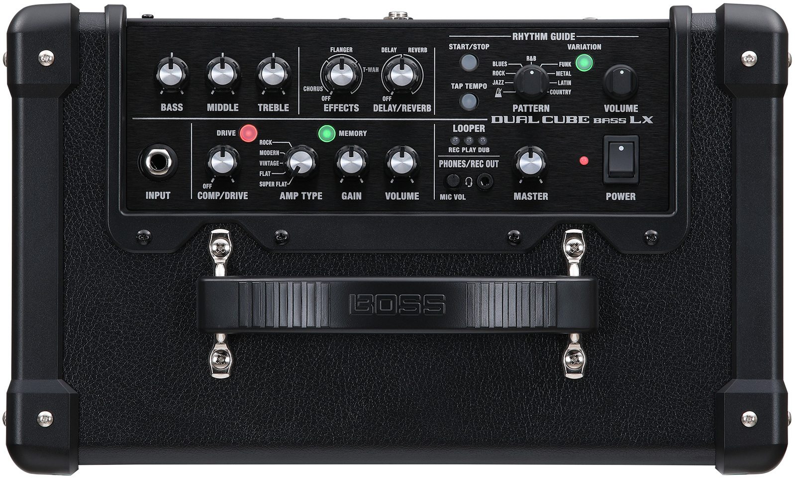 For over four decades, CUBE amplifiers have brought exceptional value to musicians everywhere, offering great sound and versatile features in portable, go-everywhere designs. The DUAL CUBE BASS LX is the most advanced compact CUBE bass amp yet, filled with evolved BOSS technologies for the ultimate home practice experience. This thunder box punches well above its size, delivering rich, full sound and a host of fun rhythm patterns to groove with. A generous array of connectivity options are also included, extending its range to performing, recording, and many other applications.