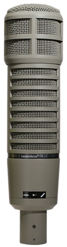 The Electro-Voice RE20 is a professional-quality dynamic cardioid microphone created specially for recording, broadcast and sound-reinforcement applications requiring essentially flat response over a very wide frequency range.