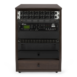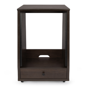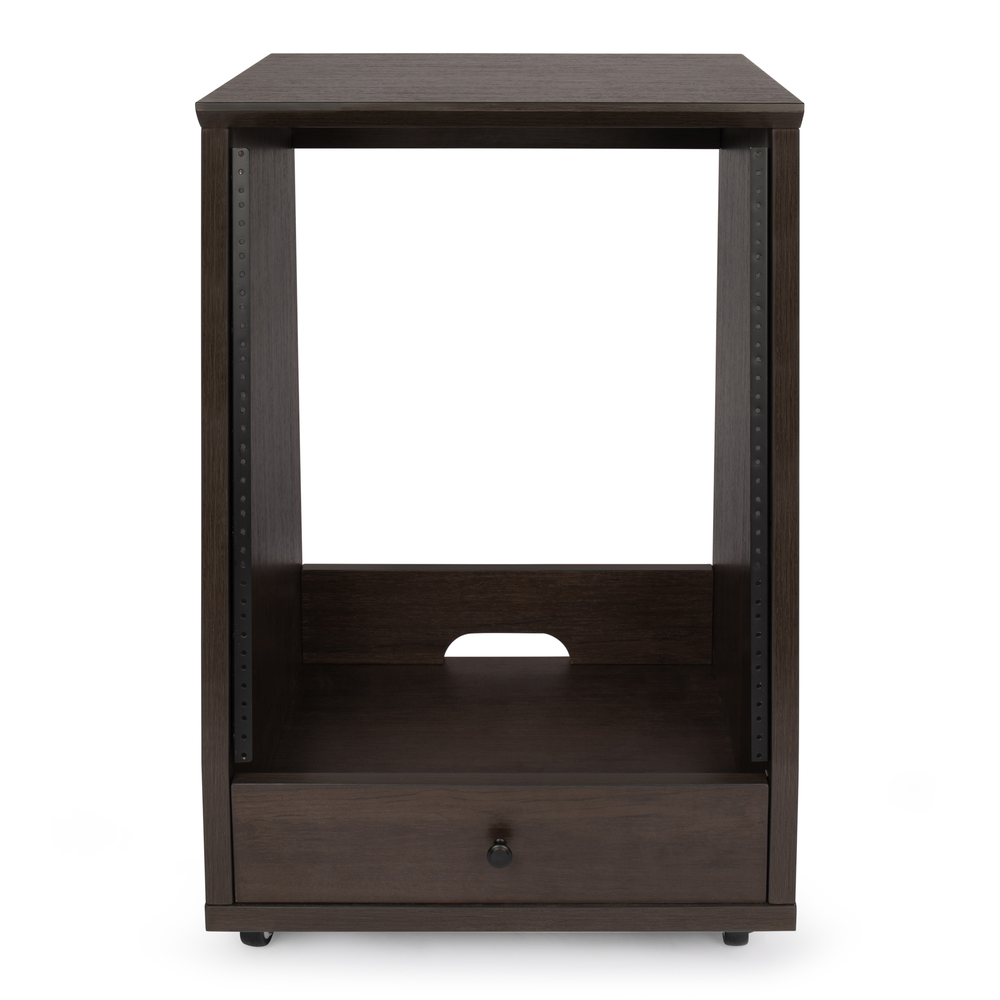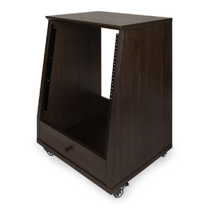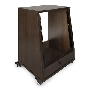Elite Furniture Series 12U Angled Studio Rack with Locking Casters in Dark Walnut Brown Finish