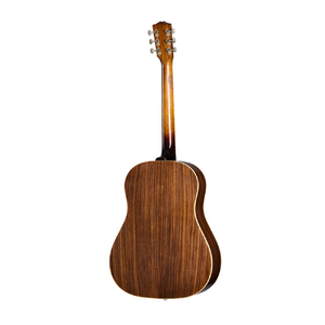 During a time when cultural optimism was low, Gibson dreamed up a new line of advanced instruments; included in those models was the Advanced Jumbo. Due to low production numbers from 1936-1939, this model largely flew under the radar even though it was a supreme-sounding and performing instrument. Gibson Custom is pleased to once again offer the Gibson 1936 Advanced Jumbo, outfitted with a thermally aged red spruce top and hide glue-fitted hand-scalloped X-bracing that help to give it the tone of a long-treasured musical companion, solid rosewood back and sides, and a mahogany neck with a 25.5 (647.7 mm) scale length, vintage Advanced Jumbo profile, a rosewood fretboard with a 12 fretboard radius, 19 standard frets, and mother-of-pearl diamonds and arrows inlays.
