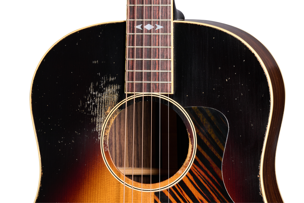 Expect a heavy weather-checked finish, heavy belt buckle wear, light arm wear, and light neck wear. Heres your chance to own one of Gibsons most coveted vintage acoustic guitar models, with all the tone, vibe, playability, and appearance of a vintage original without the vintage price tag and potential issues that can accompany an eighty-year-old guitar. A period-correct hardshell case from Gibson Custom is included, along with a certificate of authenticity.