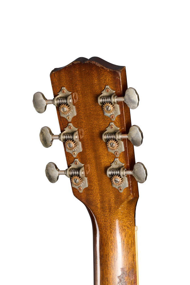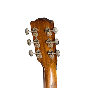The bridge is the original open slot rectangular style, and the firestripe pickguard features the original Advanced Jumbo shape. The nut, saddle, and bridge pins are all bone, and the tuning machines are premium Waverly tuners. The 1936 Advanced Jumbo Heavy Aged brings back all the tone and prestige that made these such sought-after instruments by artists and collectors. It features Heavy Aging by the skilled artisans of the Murphy Lab. The Murphy Lab Heavy Aged finish treatment, paired with heavily aged nickel hardware, simulates decades of heavy play wear, giving it the unique character, vibe, and feel of an original example from the Gibson Golden Era.