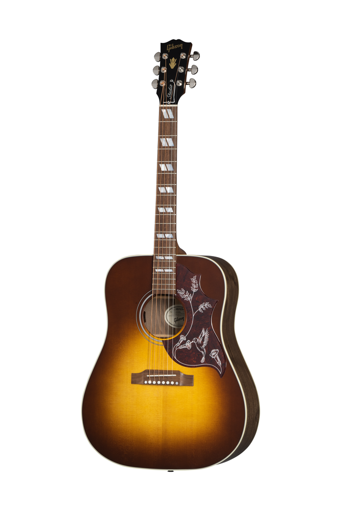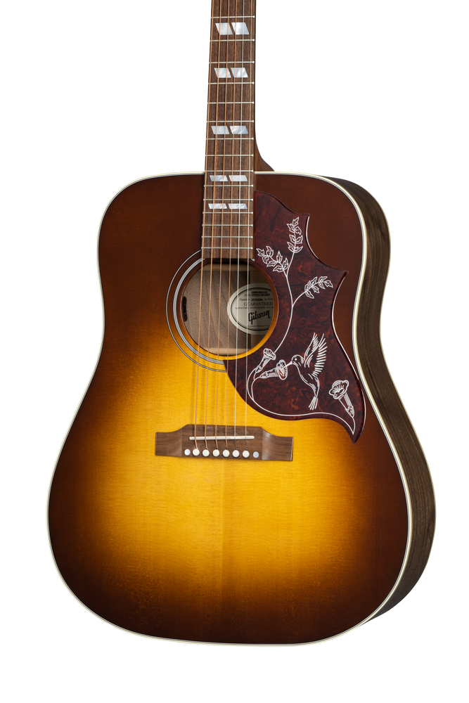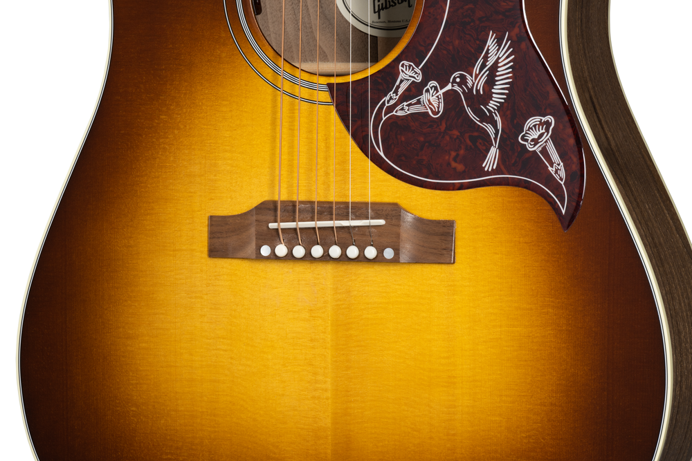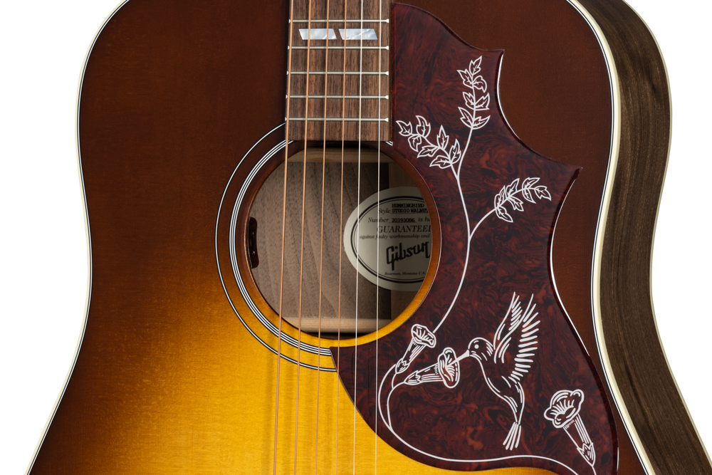 The Hummingbird™ Studio Walnut continues Gibson’s long history of producing world-famous square shoulder body designs, such as the Hummingbird, Dove™, and Songwriter models. The updated Hummingbird Studio Walnut is hand-built using all solid tone woods and is equipped with an Advanced Response profile Utile neck for smooth, easy playability. It features a full-depth body for enhanced tonal response and a satin nitrocellulose finish, giving it the look and feel of a long-treasured musical companion. Available in Satin Natural and Satin Walnut Burst finishes, the Hummingbird Studio Walnut has an L.R. Baggs™ Element Bronze active under-saddle piezo pickup for easy studio-quality plug-and-play anywhere. Packaged in an included hard-shell case for portability, this is the Hummingbird you’ve been waiting for!