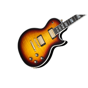 Gibson is excited to announce the return of the Les Paul Supreme. With a refreshed feature set, it is bound to overshadow everything else in sight. It features a beautiful AAA-figured maple top on a mahogany body with Ultra-Modern Weight Relief. The mahogany neck has an ebony fretboard with a compound radius and Super Split Block mother-of-pearl inlays. The neck has a Modern Contoured Heel for exceptional upper fret access, and the headstock is adorned with a striking new mother-of-pearl inlay inspired by a design from the 1940s that was discovered in the Gibson archives. The Burstbucker Pro and Burstbucker Pro + pickups are paired with push/pull Volume and Tone potentiometers for flexible coil tap, phase, and Pure Bypass switching. The three gorgeous finishes are elegantly highlighted with gold hardware, making this not only a great-sounding and highly flexible instrument but also an exceptionally beautiful-looking modern rock machine. A hard-shell case is also included