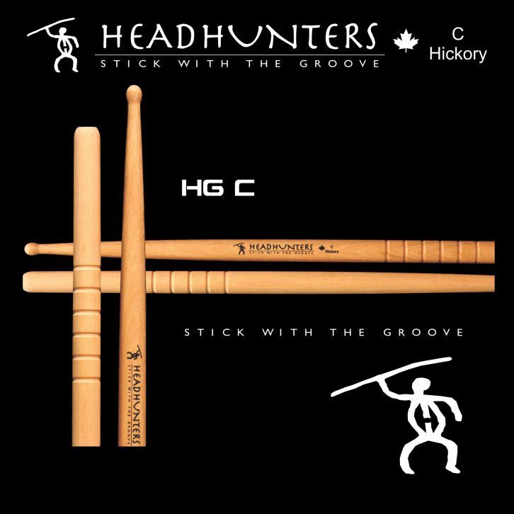 Headhunters Hickory Grooves C Drum Sticks with Wood Tip (1-Pair)
