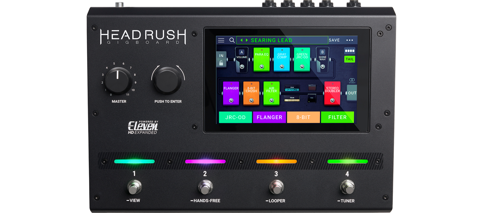 Featuring a finely-tuned quad-core processor and powered by exclusive Eleven® HD Expanded™ DSP software, the HeadRush Gigboard® delivers the most versatile, realistic-sounding and responsive amplifier, cabinet, microphone and FX models ever found in a compact, road-ready floorboard guitar FX processor. The 7-inch touch display enables you to touch, swipe and drag-and-drop to instantly create and edit your rigs in an unprecedentedly realistic and intuitive way.