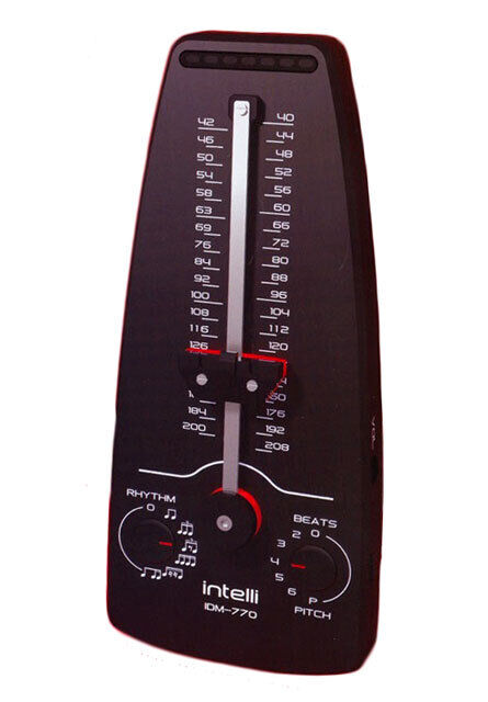 The Intelli IDM770 Digital Metronome offers modern technology with a classic design. This digital metronome comes with a traditional twist, the tempo is adjusted with a sliding counterweight-style switch like those usually found on traditional pendulum metronomes.