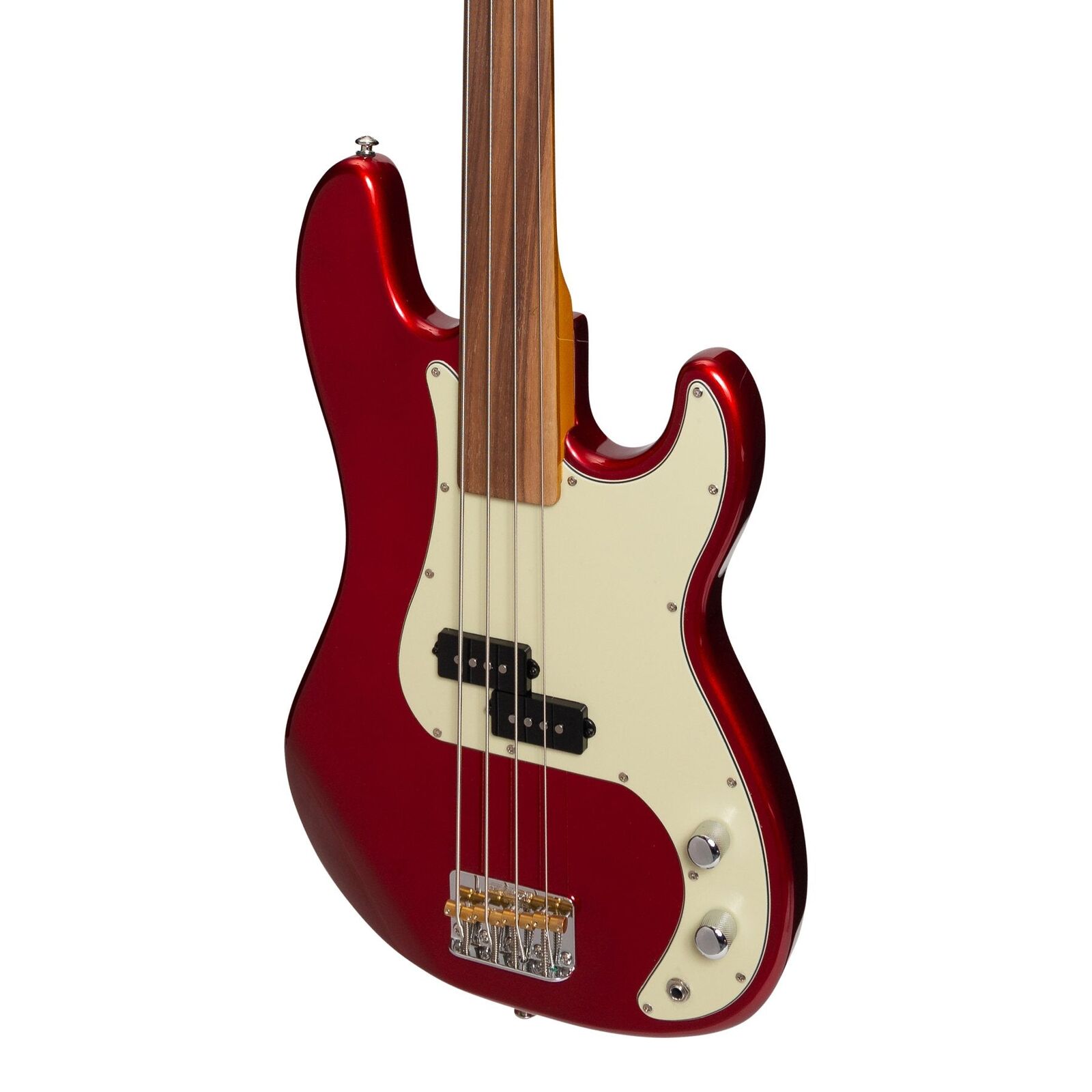 The JD-PB63F-CRMSN is an innovative take on the iconic P style bass design which features a fretless fingerboard, providing truly unique tone and playability at an unprecedented price.
