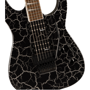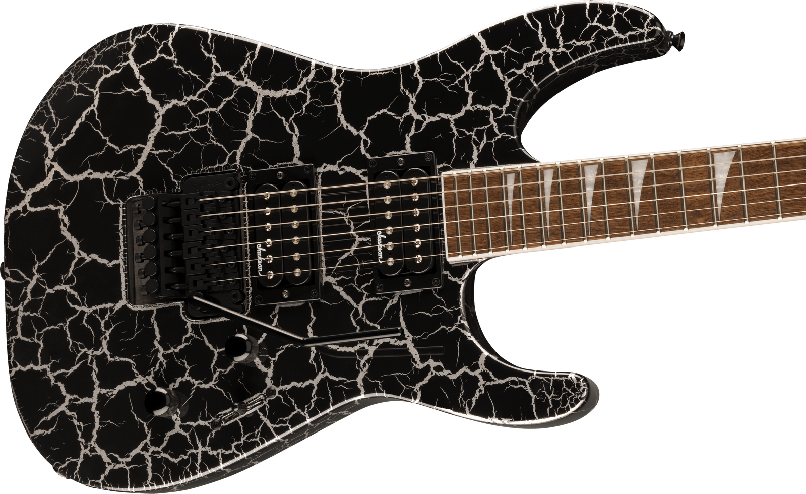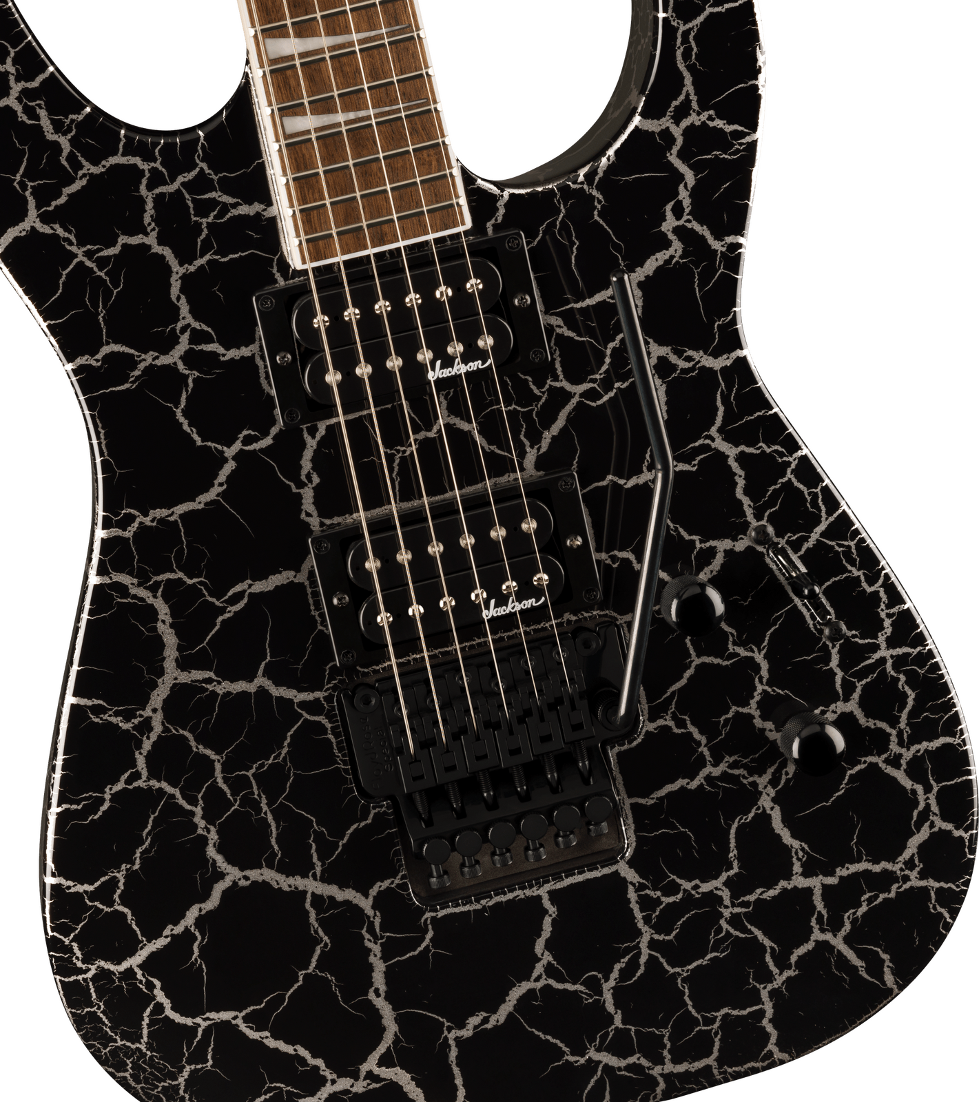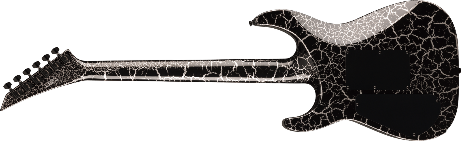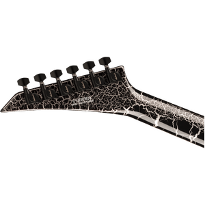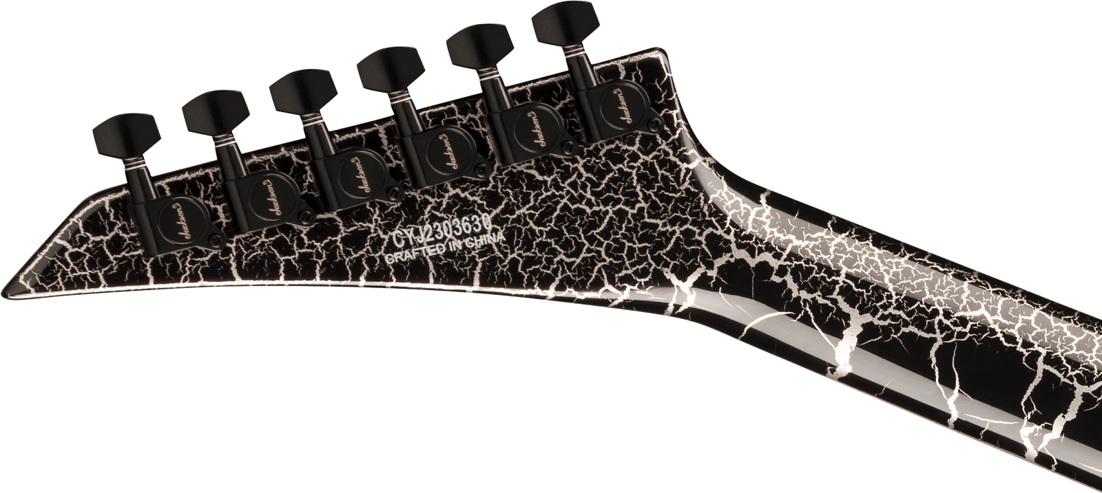 - Available in Silver Mercury or Bloodshot Crackle with black Jackson pointed 6-in-line headstock and black hardware; Crackle finish is on both front and back, including the neck back.