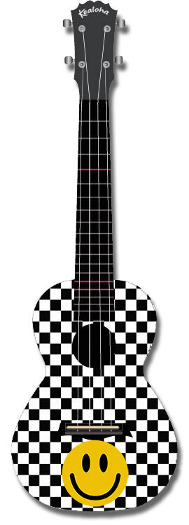 Kealoha "Checkerboard Smiley Face" Design Concert Ukulele with Black ABS Resin Body