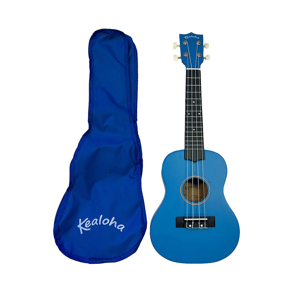 Kealoha Wooden Coloured Series Concert Ukulele with Bag in Blue Satin Finish. Perfect for the beginner ukulele player it features tuneable machine heads, a pinned bridge and a colourful satin finish. Other colours available are Green, Pink, Orange, Natural, Black or Red.