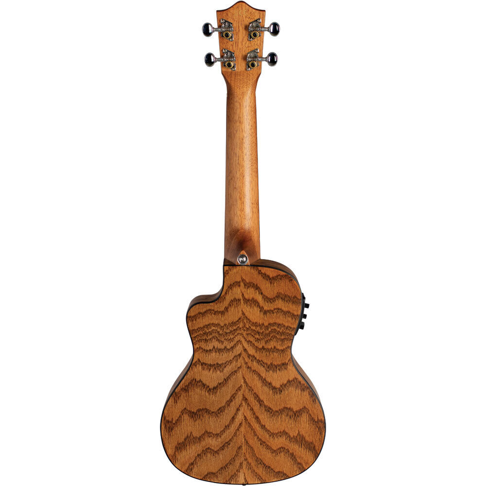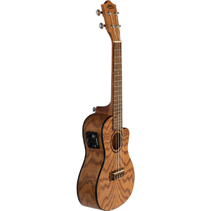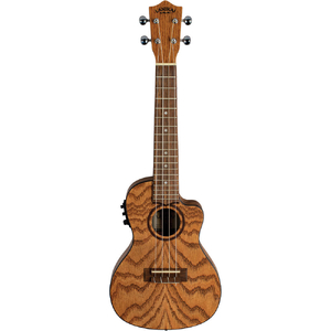 A Lanikai Oak concert cutaway electric ukulele has many beneficial features including a wider nut for player comfort, select wood, open back tuners, NuBone XB nut and saddle, DAddario strings, a Fishman Kula preamp and tuner, satin finish, a padded gig bag. These ukes have a bright crisp tone with comfortable playability and striking looks.
