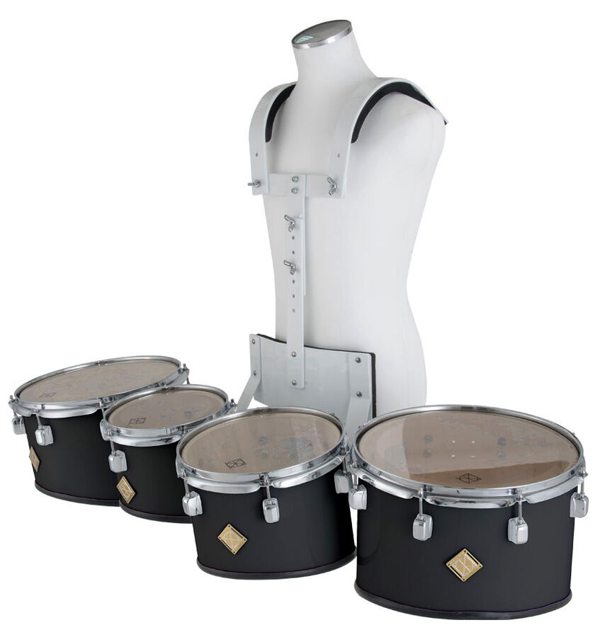 Marching Tenor Drum Quad Set in Black with Carrier.