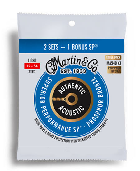 Martin Value 3-Pack Authentic Acoustic SP 92/8 Phosphor Bronze Light Guitar String Set (12-54)