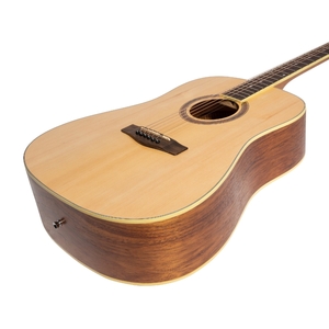 TOP:LAMINATE SPRUCE BACK / SIDES: LAMINATE ROSEWOOD NECK:MAHOGANY FINGERBOARD: ROSEWOOD BRIDGE: ROSEWOOD BRIDGE SADDLE:75mm SCALE LENGTH:25.5" NUT WIDTH:43mm MACHINE HEADS:MARTINEZ PICKUP SYSTEM:NONE BUILT IN TUNER:NONE FRETS:20 WARRANTY:3 YEARS INCLUDES GIG BAG: YES