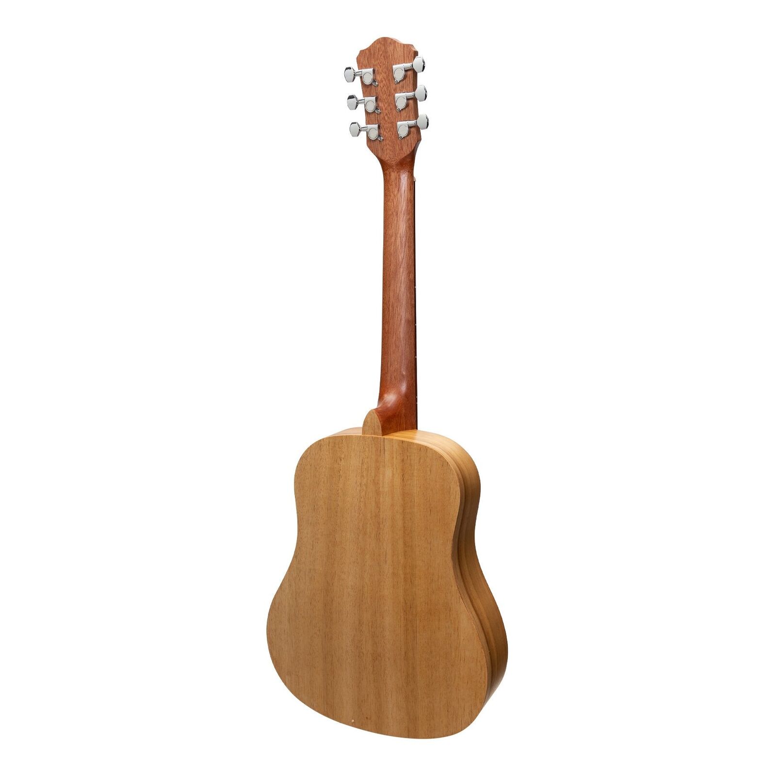 TOP:LAMINATE ACACIA BACK / SIDES: LAMINATE ACACIA NECK: MAHOGANY FINGERBOARD: ROSEWOOD BRIDGE: ROSEWOOD BRIDGE SADDLE: 75mm SCALE LENGTH: 23" NUT WIDTH: 42mm MACHINE HEADS: MARTINEZ PICKUP SYSTEM: PIEZO UNDERSADDLE PICKUP BUILT IN TUNER: NONE FRETS: 20 WARRANTY: 3 YEARS INCLUDES CASE: NONE