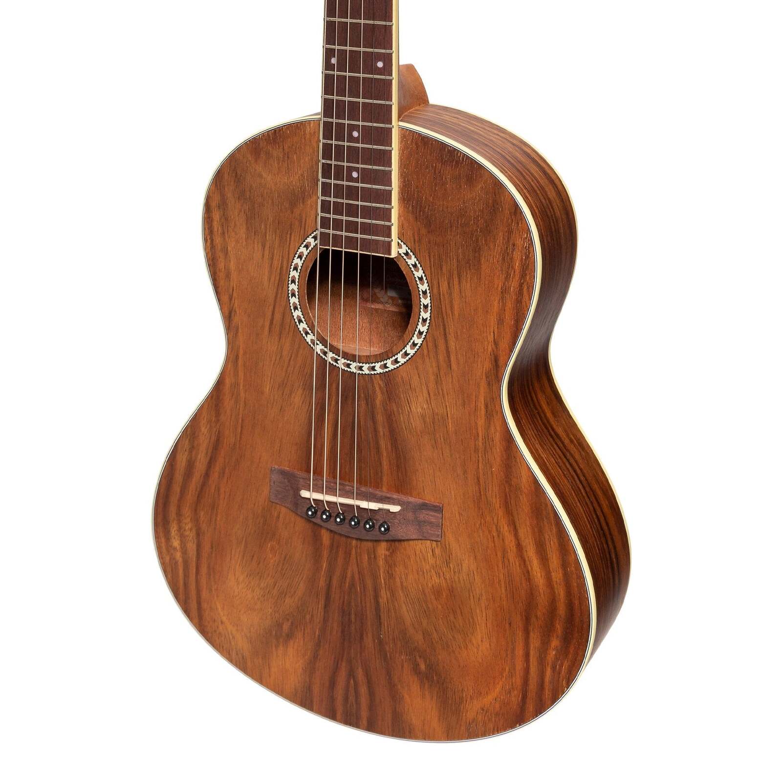 TOP:LAMINATE ROSEWOOD BACK / SIDES: LAMINATE ROSEWOOD NECK: MAHOGANY FINGERBOARD: ROSEWOOD BRIDGE: ROSEWOOD BRIDGE SADDLE: 75mm SCALE LENGTH: 23" NUT WIDTH: 42mm MACHINE HEADS: MARTINEZ PICKUP SYSTEM: NONE BUILT IN TUNER: NONE FRETS: 20 WARRANTY: 3 YEARS INCLUDES CASE: NONE