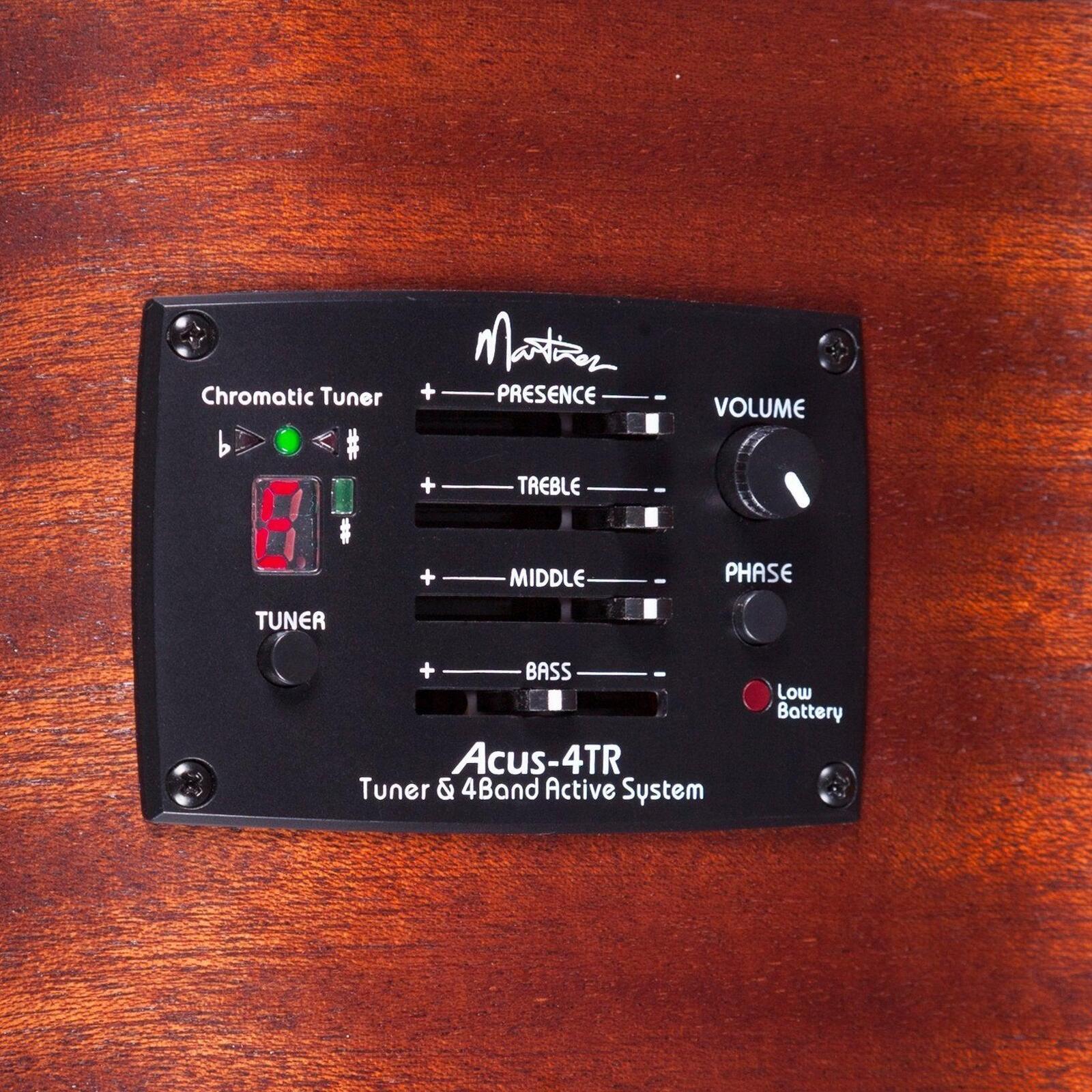 TOP: MAHOGANY BACK / SIDES: MAHOGANY NECK: MAHOGANY FINGERBOARD: TECH-WOOD BRIDGE: TECH-WOOD BRIDGE SADDLE: 75mm SCALE LENGTH: 34" NUT WIDTH: 42mm MACHINE HEADS: MARTINEZ PICKUP SYSTEM: MARTINEZ ACUS-4TR BUILT IN TUNER: YES FRETS: 22 WARRANTY: 3 YEARS INCLUDES CASE: NONE