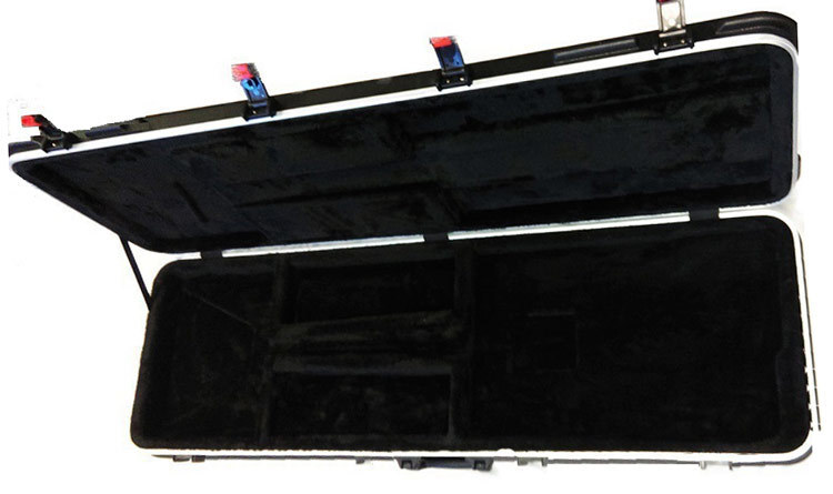 MBT ABS Electric Bass Guitar Case in Black, equipped with TSA (Transit Safety Authority) Latches. This is a rectangular shaped case that fits most standard electric guitars.