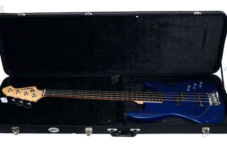 MBT Wooden Electric Bass Guitar Case in Black. This is a rectangular shaped case that fits most standard electric guitars.