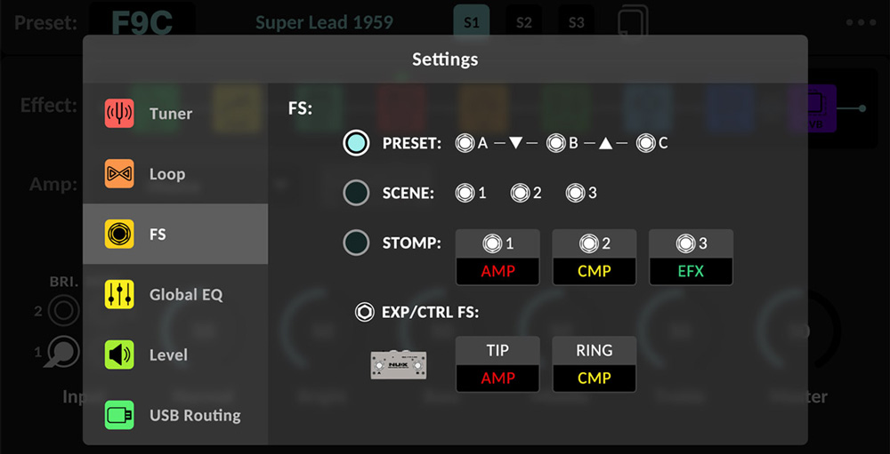 - Software: Amp Academy Stomp editor (PC), Amp Academy Stomp APP