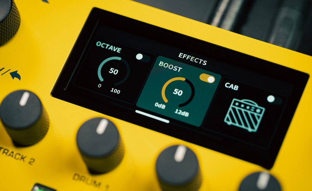 Equipped with dual loop tracks and two distinct drum patterns, it empowers you to seamlessly weave together two independent sections of a song with precision and creativity. Furthermore, its arsenal includes a suite of built-in effects, such as Octave, Booster, Cabinet Simulator, and Reverb.