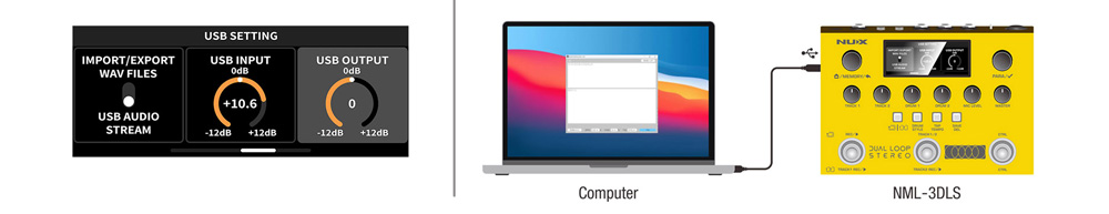 You can connect the DUAL LOOP STEREO to your computer to record the loop, drum, and any sound from your guitar & mic.