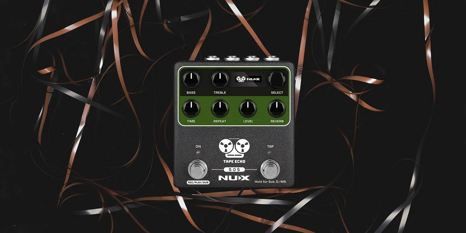 NU-X Tape Echo is a tribute to the Japanese-made Space Echo from 1974. Analogue tape echo devices record incoming audio to a loop of magnetic tape, then replays the continuous loop over the playback head before it is erased again by new incoming audio.