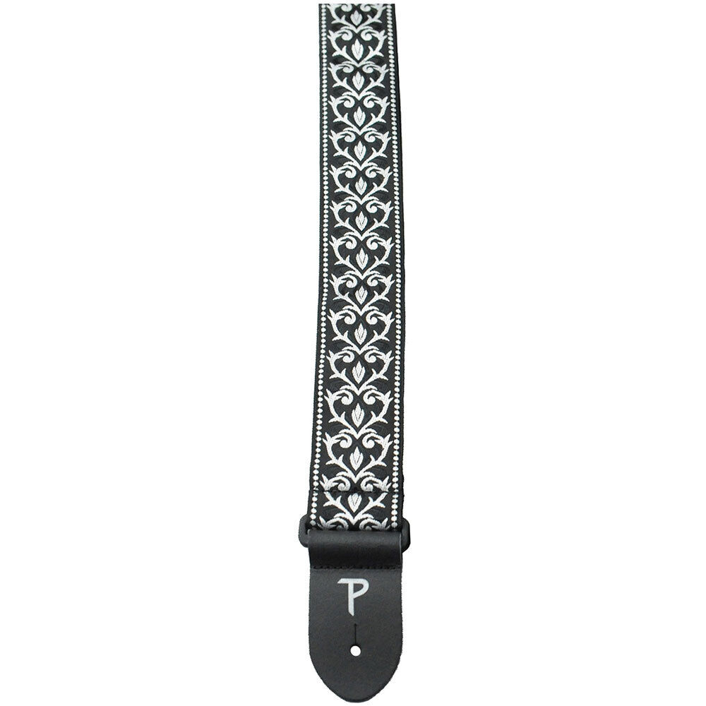 Perris 2" Jacquard Guitar Strap with "Black & White Tribal" Design & Leather ends