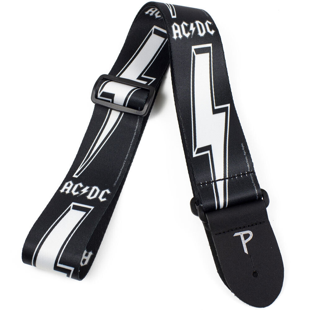 Perris 2" Polyester "AC/DC - White Logo & Lightning Bolt on Black" Licensed Guitar Strap