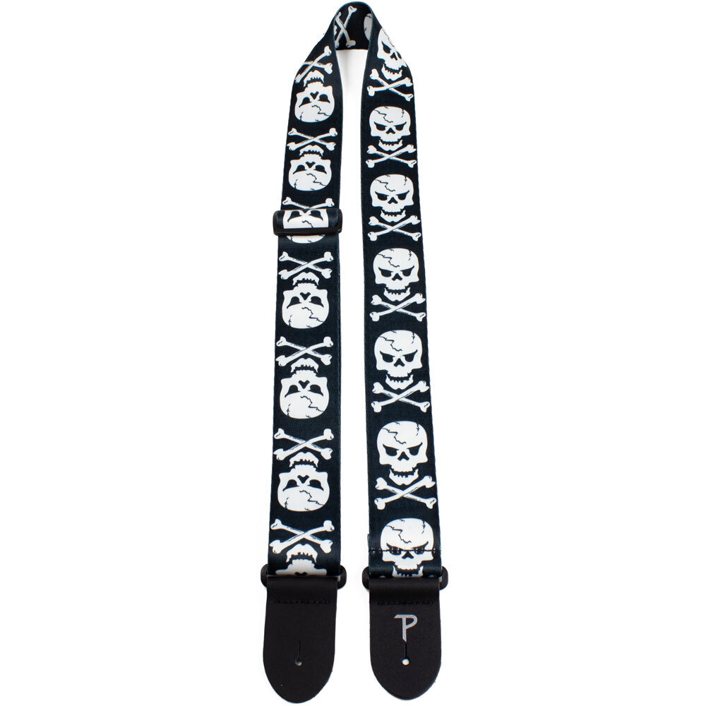 Perris 2" Polyester "Skull & Cross Bones" Guitar Strap with Leather ends