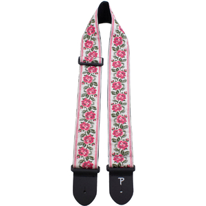Perris 2.5" Jacquard Guitar Strap with "Red Roses on White" Design & Leather ends