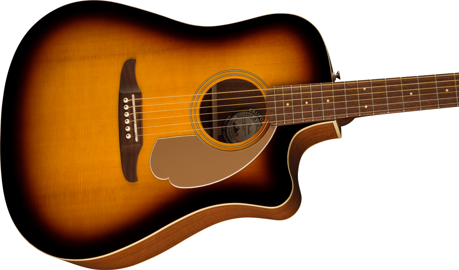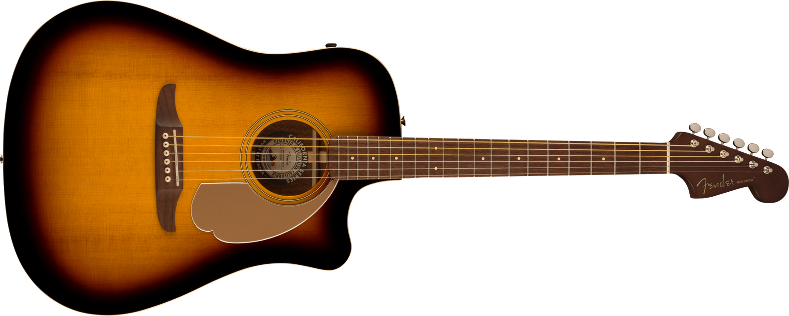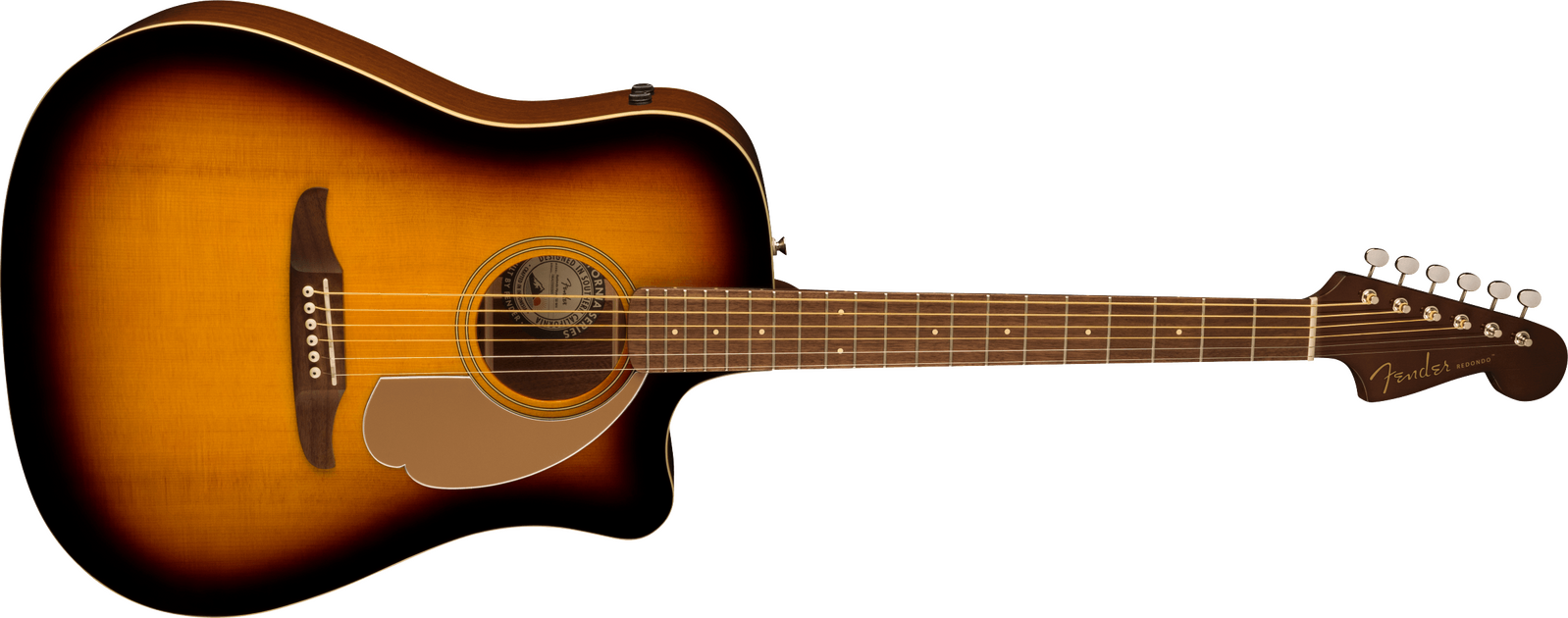 Crafted with an X-braced solid spruce top and sapele back and sides, the dreadnought body of the Redondo Player produces a deep, robust voice with exceptional projection and volume for a wide variety of musical settings. The nato neck is designed with an easy-to-play slim "C"-shaped profile, a 25.5" scale length, and a tilt-back 6-in-line headstock for a distinctive look born from Fender's electric guitar DNA. Other notable details include vintage-style tuning machines for smooth, accurate tuning, a GraphTech® NuBone® nut and saddle for detailed harmonic character. With elegantly integrated controls for a sleek, modern look, the onboard Fishman® Flex preamp system allows faithful reproduction of the guitar's natural sound when plugged into an amplifier or recording device.