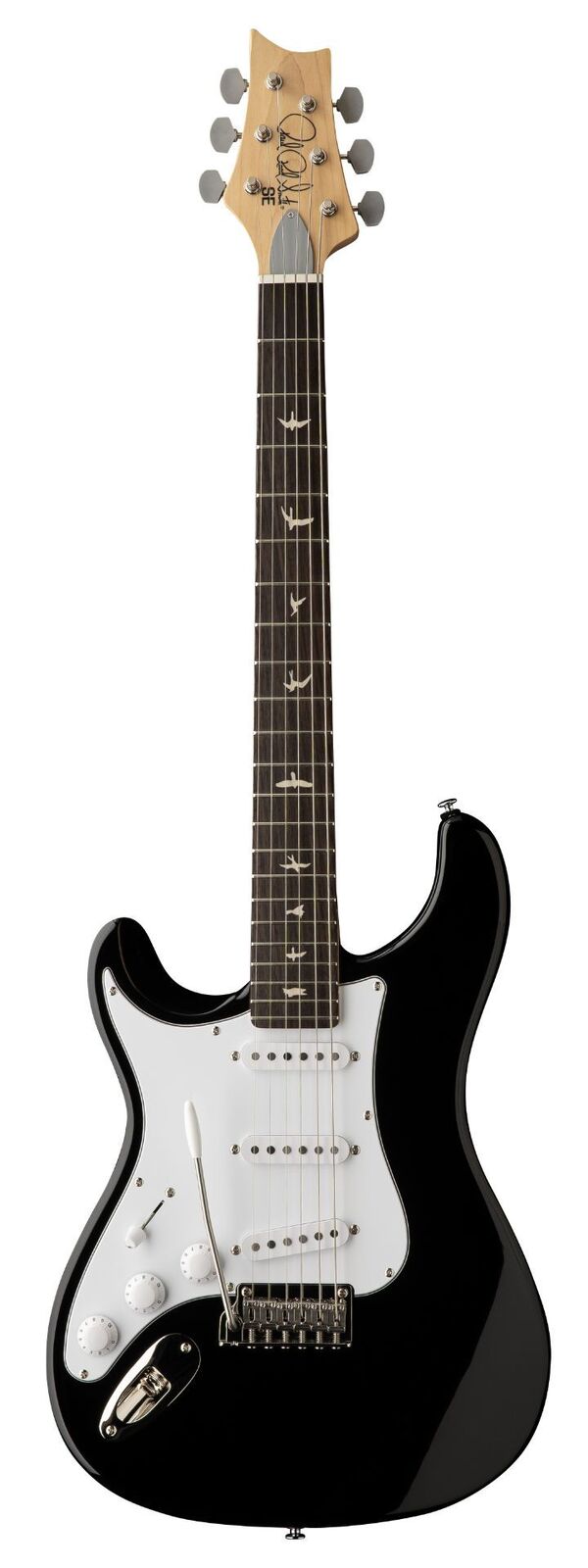 Reach for the Sky The SE Silver Sky is a familiar iteration of the original Silver Sky model that was first introduced with John Mayer in 2018. This workhorse guitar provides ample tone and playability in four distinct colors, delivering looks, feel, and sound. The PRS SE Silver Sky starts with a poplar body, bolt-on maple neck, and rosewood fretboard with PRS trademark bird inlays. The 22-fret, 25.5 scale length neck features the original 635JM carve and an 8.5 fretboard radius, so the PRS SE Silver Sky will feel right at home. Plug it in, and the three single-coil 635JM S pick-ups will bark and sing. This guitar is anchored by a two-point steel tremolo, synthetic bone nut, and vintage-style tuners. Other design features include the PRS Silver Sky inverted headstock shape and the PRS double-acting truss rod (accessible from the front of the headstock for ease of use). Ships with PRS Classic 10-46 strings and gig bag.