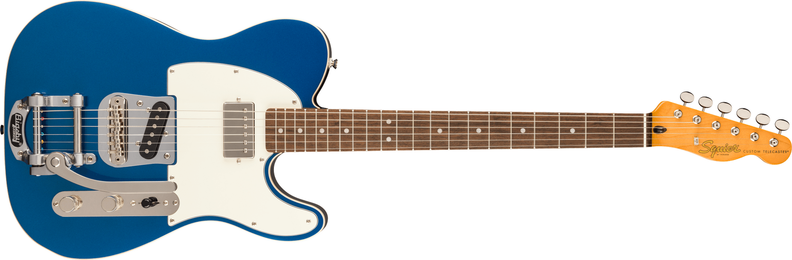 A tribute to the double-bound body Tele® models of the late '50s and '60s, this Classic Vibe™ Custom Telecaster creates incredible tone courtesy of its Fender Designed™ alnico single-coil bridge and humbucking neck pickups (SH). Delivering expressive vibrato effects, the Bigsby® tailpiece features a string-through design for easy restringing and is complemented by a floating bridge with barrel saddles for optimal intonation stability. This throwback Squier® model also features period-inspired headstock markings, rich-looking nickel-plated hardware and a slick vintage-tinted gloss neck finish for an old-school vibe.