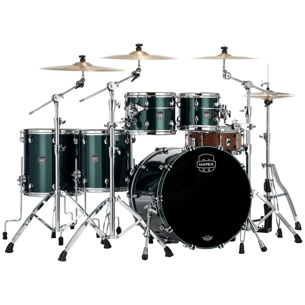 Mapex SE628XMPQ Saturn Evolution Maple-Walnut Series 5-Pce Drum Kit in Brunswick Green Lacquer