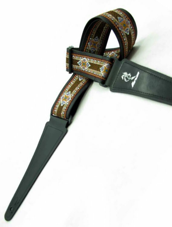 Vorson Black Leather Guitar Strap with Special Design 1 Fabric Inlay