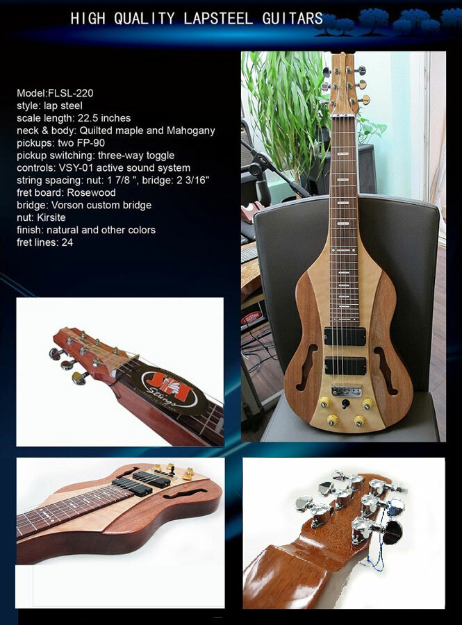 The Vorson FLSL-220 Pro Lap Steel Guitar sounds as good as it looks and it looks incredible! The FLSL- 220 Pro features a semi-hollow design with two sculpted F-holes and the solid center section is topped with raised, natural quilted maple that is repeated at the headstock.