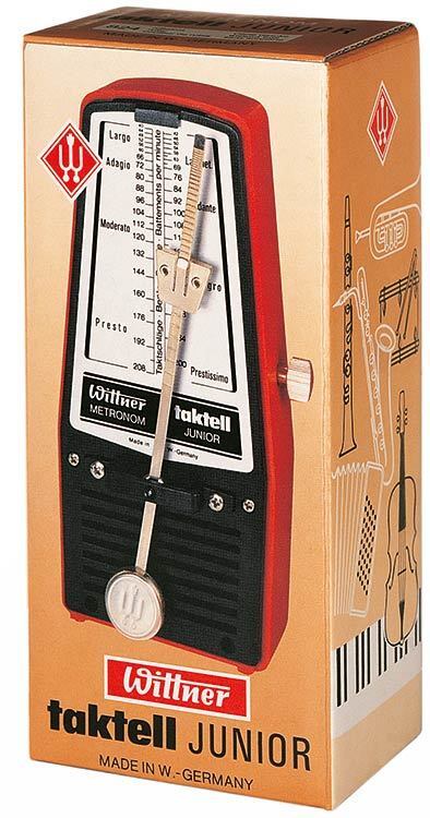 Plastic casing, Black colour, without bell metronome with a mechanical clockwork, No batteries required, Made in Germany.